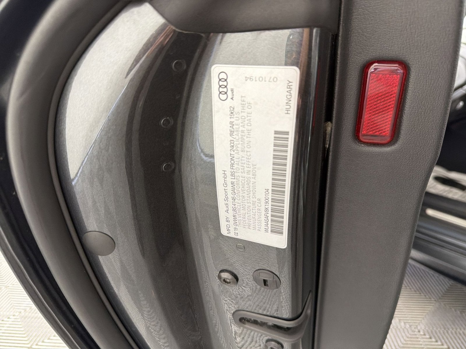 4-Wheel Disc Brakes, 680W Bang & Olufsen Sound System w/12 Speakers, 9 Speakers, ABS brakes, Air Conditioning, AM/FM radio: SiriusXM, Audi Connect w/Online Services, Audi First Aid Kit, Audi MMI Navigation Plus, Audi Side Assist, Audi Smartphone Interface, Auto-dimming door mirrors, Auto-dimming Rear-View mirror, Automatic temperature control, Black Optic Package, Brake assist, Bumpers: body-color, Carbon Fiber Decorative Inlays, Delay-off headlights, Driver vanity mirror, Dual front impact airbags, Dual front side impact airbags, Dynamic Package, Electronic Stability Control, Exterior Parking Camera Rear, Fine Nappa Leather Seat Trim w/Honeycomb Stitching, Front anti-roll bar, Front Bucket Seats, Front Center Armrest, Front fog lights, Front reading lights, Fully automatic headlights, Heated door mirrors, Heated Front S Sport Seats, Heated front seats, High Gloss Black Exterior Mirror Housings, Illuminated entry, Knee airbag, Leather Package, Low tire pressure warning, Occupant sensing airbag, Outside temperature display, Overhead airbag, Panic alarm, Passenger vanity mirror, Power door mirrors, Power driver seat, Power passenger seat, Power steering, Power windows, Radio data system, Radio: Audi MMI, Rain sensing wipers, Rear anti-roll bar, Rear fog lights, Rear window defroster, Red Brake Calipers, Remote CD player, Remote keyless entry, RS Design Interior Package, RS Design Selection Interior - Red, RS Floor Mats, Security system, Speed control, Speed-Sensitive Wipers, Spoiler, Sport Exhaust System w/Black Tips, Sport steering wheel, Steering wheel mounted audio controls, Tachometer, Technology Package, Telescoping steering wheel, Tilt steering wheel, Trip computer, Turn signal indicator mirrors, Variably intermittent wipers, Wheels: 20" Audi Sport 7-Spoke Design Forged, Wheels: 20" Forged Anthracite 7-Spoke Design.