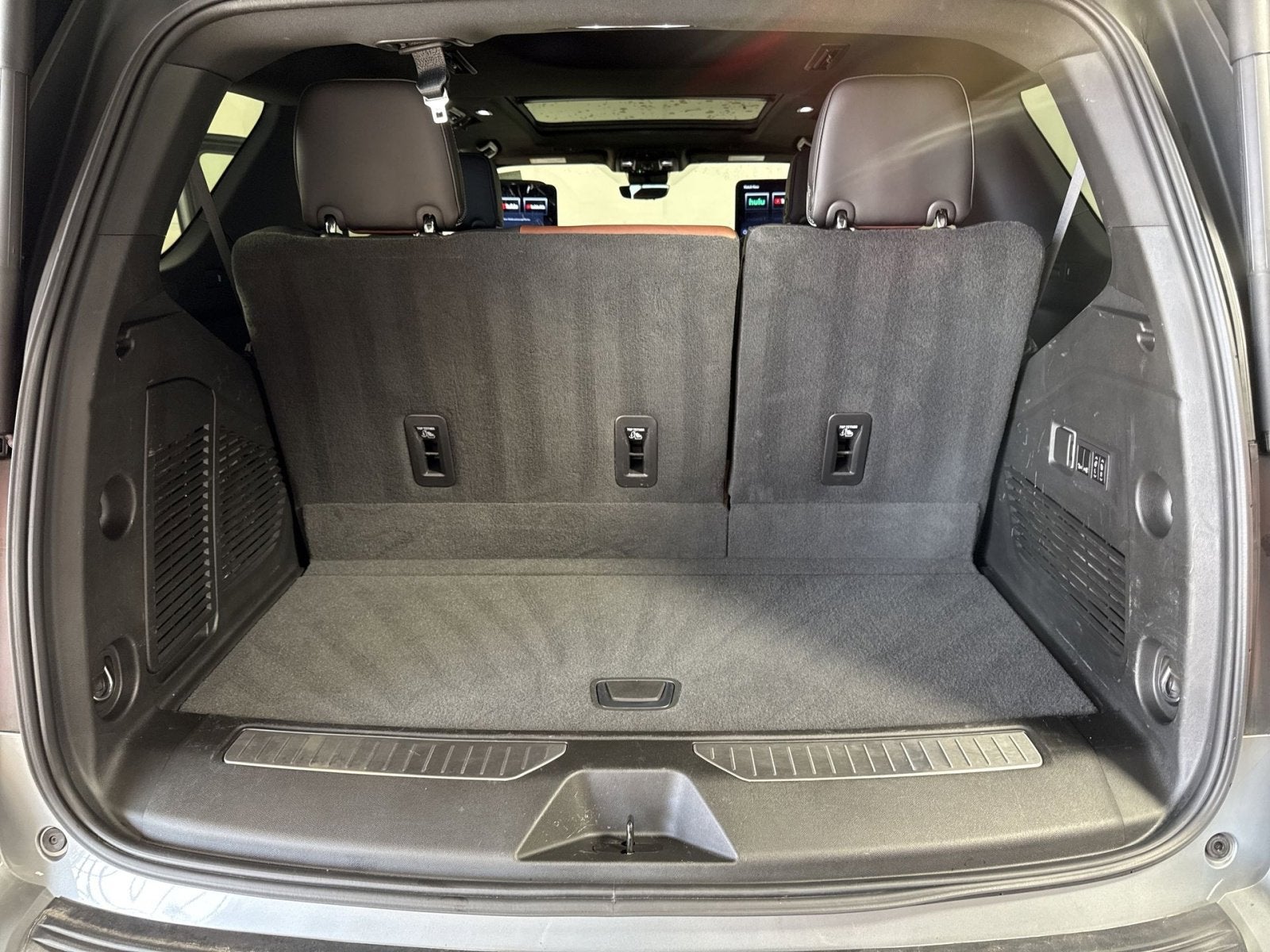 PANORAMIC SUNROOF, 4WD, 15" Diagonal Multi-Color Head-Up Display, 16-Way Power Seat Adjusters, 18 Speakers, 2 Presets For Outside Rearview Mirrors, 3rd Row 60/40 Power-Folding Split-Bench Seat, 4-Wheel Disc Brakes, ABS brakes, Adaptive Cruise Control, Adaptive suspension, Advanced Security Package, Advanced Technology Package, Air Conditioning, Air Ride Adaptive Suspension, AM/FM radio: SiriusXM with 360L, AM/FM Stereo, Apple CarPlay/Android Auto, Auto High-beam Headlights, Auto-dimming Rear-View mirror, Auto-leveling suspension, Automatic temperature control, Bose Performance Series Sound System w/18 Speakers, Brake assist, Bright Front & Rear Door Sill Plates, Chrome Door Handles w/Body-Color Strip, Delay-off headlights, Dual Exhaust System, Dual front impact airbags, Dual front side impact airbags, Dual-Pane Panoramic Power Sunroof, Electronic Limited Slip Differential (eLSD), Electronic Stability Control, Emergency communication system: OnStar and GMC connected services capable, Enhanced Automatic Emergency Braking, Enhanced Automatic Parking Assist, Extra Capacity Cooling System, Floor Console, Four wheel independent suspension, Front anti-roll bar, Front Bucket Seats, Front dual zone A/C, Front fog lights, Fully automatic headlights, Glass Breakage Sensor, Hands-Free Power Programmable Rear Liftgate, HD Surround Vision, Headphones, Heads-Up Display, Heated 2nd Row Outboard Position Seats, Heated Driver & Front Passenger Seats, Heated front seats, Heated rear seats, Heated Steering Wheel, Hill Descent Control, Illuminated entry, Inside Rearview Auto-Dimming Rear Camera Mirror, Leather-Wrapped Steering Wheel, License Plate Front Mounting Package, Low tire pressure warning, Magnetic Ride Control Suspension, Max Trailering Package, Memory seat, Navigation System, Occupant sensing airbag, Outside Heated Power-Adjustable Mirrors, Overhead airbag, Perforated Heated & Ventilated Dr & Frt Pass Seats, Power driver seat, Power Liftgate, Power moonroof, Power passenger seat, Power Release 2nd Row Bucket Seats, Power steering, Power Tilt & Telescopic Steering Column, Power windows, Power-Retractable Assist Steps, Preferred Equipment Group 5SB, Premium Capability Package w/Active Response 4WD, Rear air conditioning, Rear anti-roll bar, Rear audio controls, Rear Camera Mirror Washer, Rear Cross Traffic Alert, Rear Pedestrian Alert, Rear Seat Media System, Rear window defroster, Remote keyless entry, Reverse Automatic Braking, Safety Alert Seat, SiriusXM w/360L, Speed-sensing steering, Sport Pedal Cover Kit (LPO), Steering wheel memory, Steering wheel mounted audio controls, Super Cruise, Theft-Deterrent Alarm System, Traction control, Universal Home Remote, Vader Bodyside Moldings, Vehicle Inclination Sensor, Vehicle Interior Movement Sensor, Ventilated front seats, Wireless Charging.